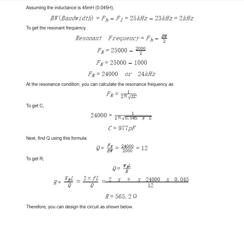 If the task is to design a circuit with 23 kHz and 25 kHz as the cut-off frequencies, here’s how to go about it.