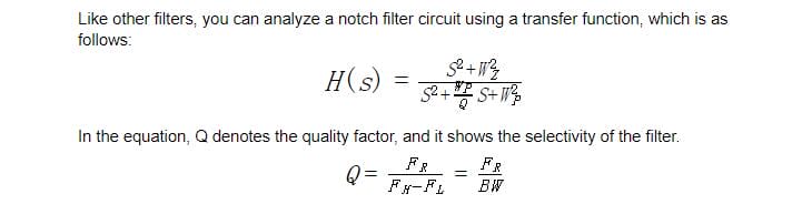 However, there are different notch filter types, and each has a unique circuit design. They include: